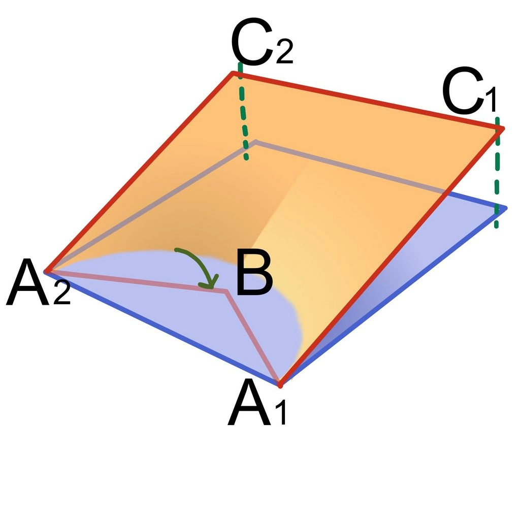 Consider the two n-sided polygons in the sketches below. The orange polygon is almost coplanar to the blue polygon - the sketch accentuates the difference. Based on the floating point tolerances in use, the vertices A1 and A2 lie in the plane of the blue polygon, whilst the vertices C1 and C2 are slightly above that plane. What of vertex B? The geometry suggests that if vertex B doesn’t lie on the plane of the blue polygon, it should lie above it. However …